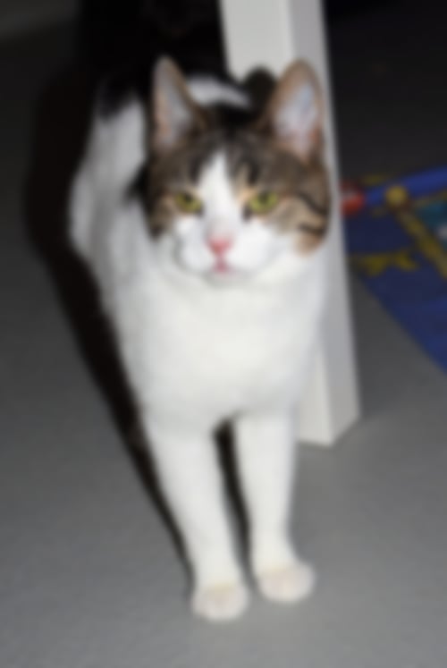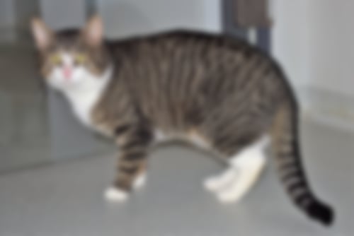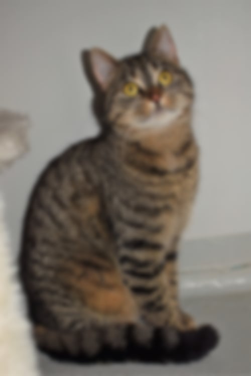 Lue wird die letzten Wochen immer mutiger. Anfänglich hat man ihm im Katzenzimmer nur vermuten können :) Mittlerweile guckt er neugierig um die Ecke, sobald jemand sein Katzenzimmer betritt. Sobald das Spielzeug zu sehen ist, kommt er herbei und spielt. Nur anfassen können wir ihn bisher noch nicht. Erfahrungsgemäß entwickeln sich die Katzen im neuen zu Hause schneller, daher denken wir das Lue sicherlich gute Fortschritte macht. Beim auffinden fehlte ihm bereits seine Rute, entweder ist er so zur Welt gekommen, oder irgendetwas ist ihm draußen zugestoßen. Für Lue ist die fehlende Rute allerdings kein Problem. Er klettert auf Kratzbäume und ist aktiv. Ein zutraulicher Artgenosse im neuen zu Hause würde ihm die Eingewöhnung sicherlich erleichtern. Mit seinen geschätzten sechs Monaten wird er noch einiges dazu lernen und seine Angst im richtigen zu Hause bestimmt schnell verlieren.
